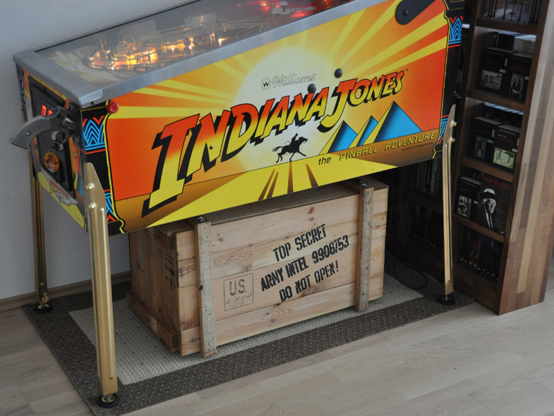 Der Plan ist: - Auf der Backbox 2 Cherubim, evtl. mit der schmaleren Platte, die auf dem Ark Deckel ist (brauche dummerweise etwas kleinere als Originalgröße). - Der Hut wandert an einen Haken an der Wand, zusammen mit einer Peitsche (falls jemand eine Peitsche loswerden will, ist nur zur Deko, aber sollte gutes Leder sein). Vielleicht ersetze ich den Hut noch durch einen Herbert Johnson in meiner Größe und hole mir noch eine Jacke, sollte mal günstig eine angeboten werden. - In's Regal soll noch ein Gral und ein oder alle 3 Sankara Steine (welche, die ich von innen beleuchten kann, so dass sie bei der entsprechenden Funktion des Flippers angehen).