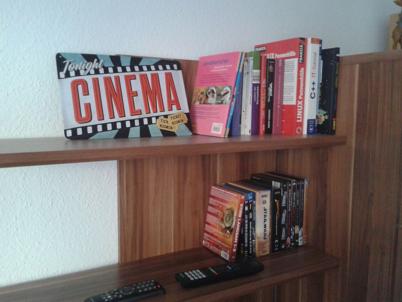 Eigentlich würde das Schild ja besser in das Fach mit den DVDs passen.