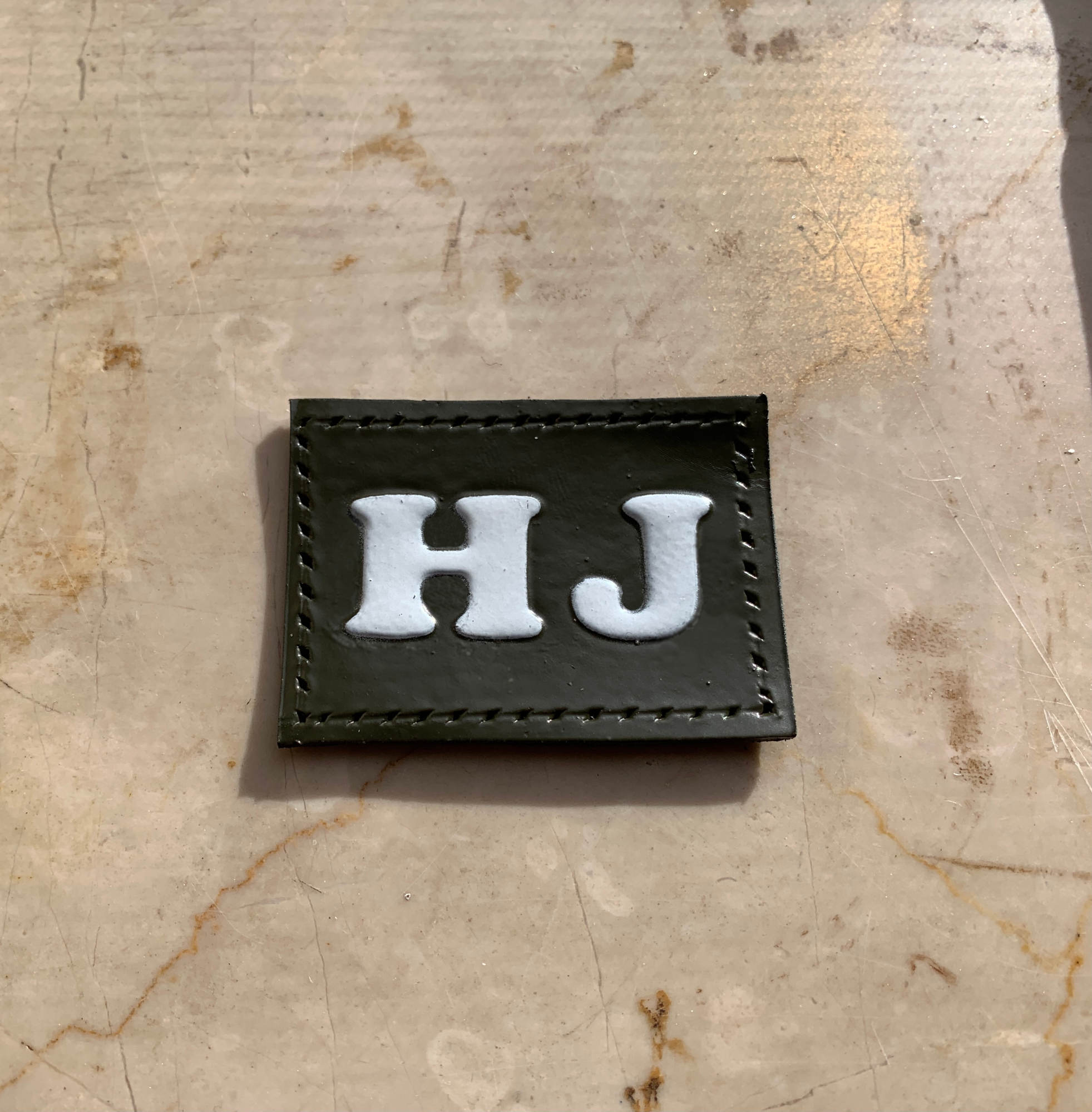 Der Patch könnte für die Beständigkeit genauso lackiert sein wie die Lederriemen des Rucksacks. Macht natürlich Sinn und wäre dann wohl RAL 6014 Bundeswehr-oliv. Wesentlich wahrscheinlicher finde ich aber, dass Indy den Patch später draufgenäht oder nähen lassen hat. Dann wäre das wiederum unwahrscheinlich.