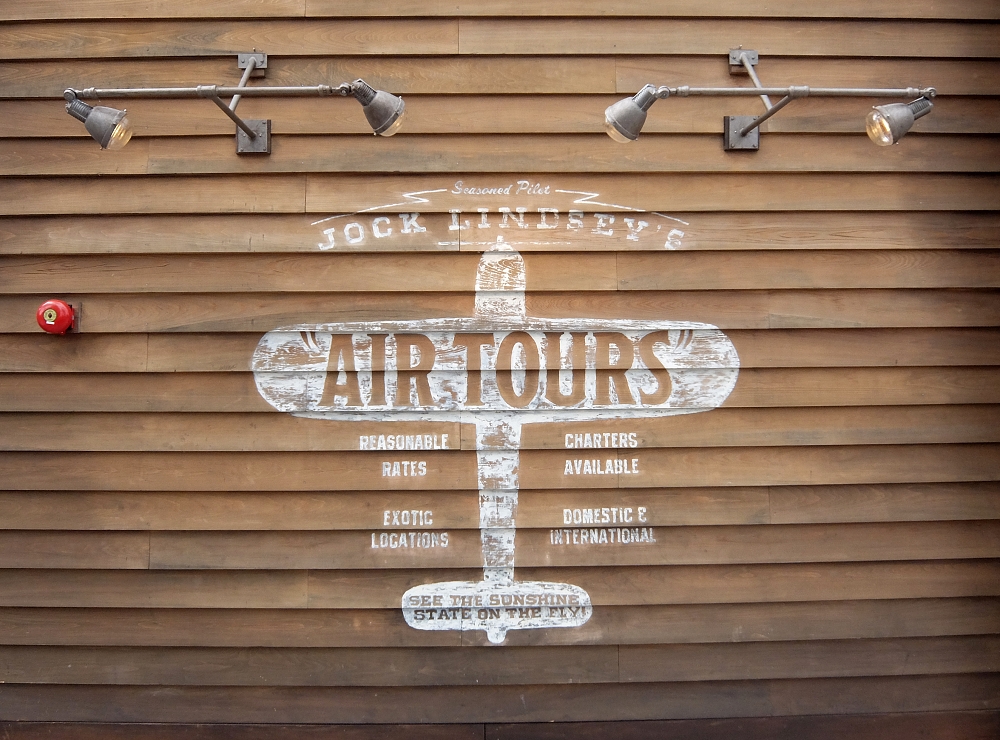 How did Jock Lindsey end up in Disney Springs? Indiana Jones’ easy going pilot, Jock Lindsey, and his snake Reggie (who made a great impression among Indy’s fans in Raiders of the Lost Ark) ended up in Disney Springs in 1938 while chasing a rumor about the Fountain of Youth that was supposedly located here in Central Florida near St. Augustine. *Funny enough, now there is a drink called “Fountain of Youth” featuring St. Augustine Florida Cane Vodka, Bols Blue Curaçao, White Cranberry Juice, and Sweet-and-Sour While flying above the beautiful Disney Springs, Jock was amazed by the town’s beauty as well as its natural springs and lush terrain. Jock loved it so much that he bought a waterfront property and decided to settle down and open an airplane hangar, an air tower and a runway to continue doing what he did best: being a pilot (after all he was part of an air circus for a while). To survive in the beginning, he started taking seaplane tours across Florida. After several of his colleagues from the Society of Explorers and Adventures started to visit him, his hangar became a very popular stopover for world travelers and locals to share their globetrotting stories and artifacts over food and drinks! Jock Lindsey’s quickly became the favorite hangar bar to gather and enjoy an afternoon among friends with good food and great drinks.