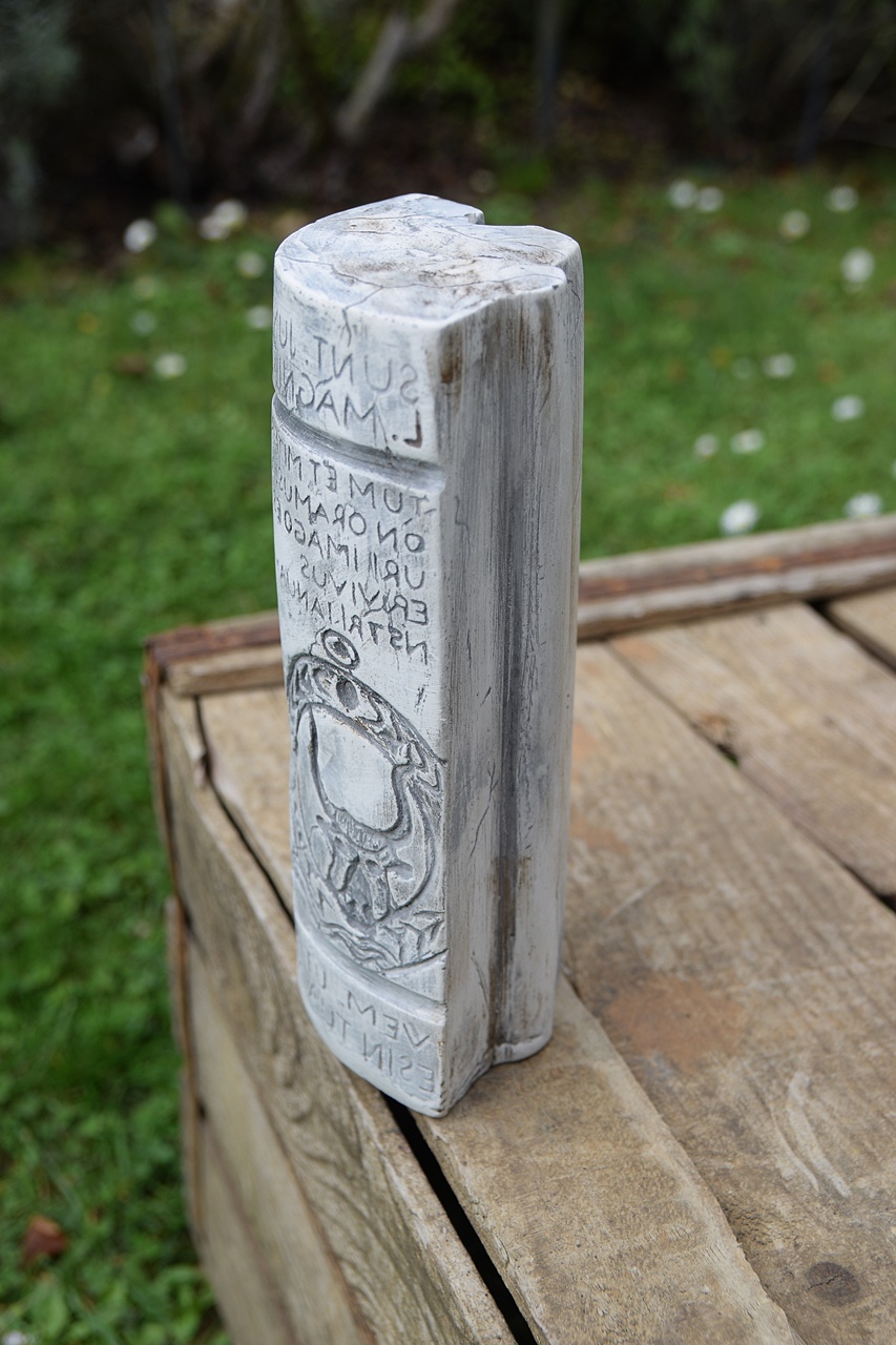 Dann haben wir ein Zylinderteil, das selbst Teil eines "Schlüssels" war. Es besteht aus Gips, mit einem Wash, was von der Beschaffenheit meiner Meinung nach gut zu solch einem Stück passt.