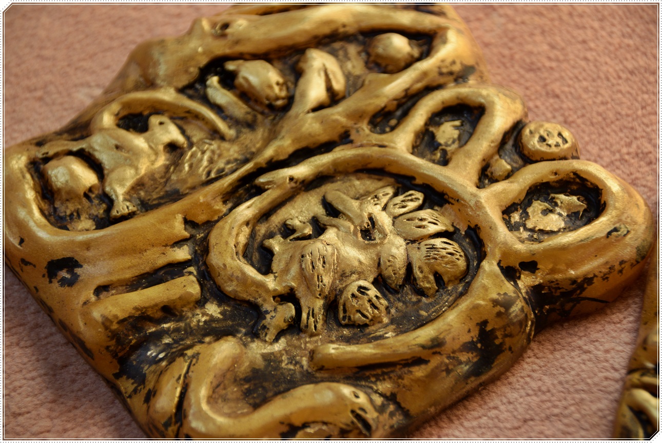 Freut mich, wenns gefällt. Hier noch ein weiteres Stück dazu, es handelt sich um den Teil des Reliefs, in welchen der kleine Diamant aus der Pfeilspitze eingesetzt werden muss, um den Baum wieder zum blühen zu bringen.