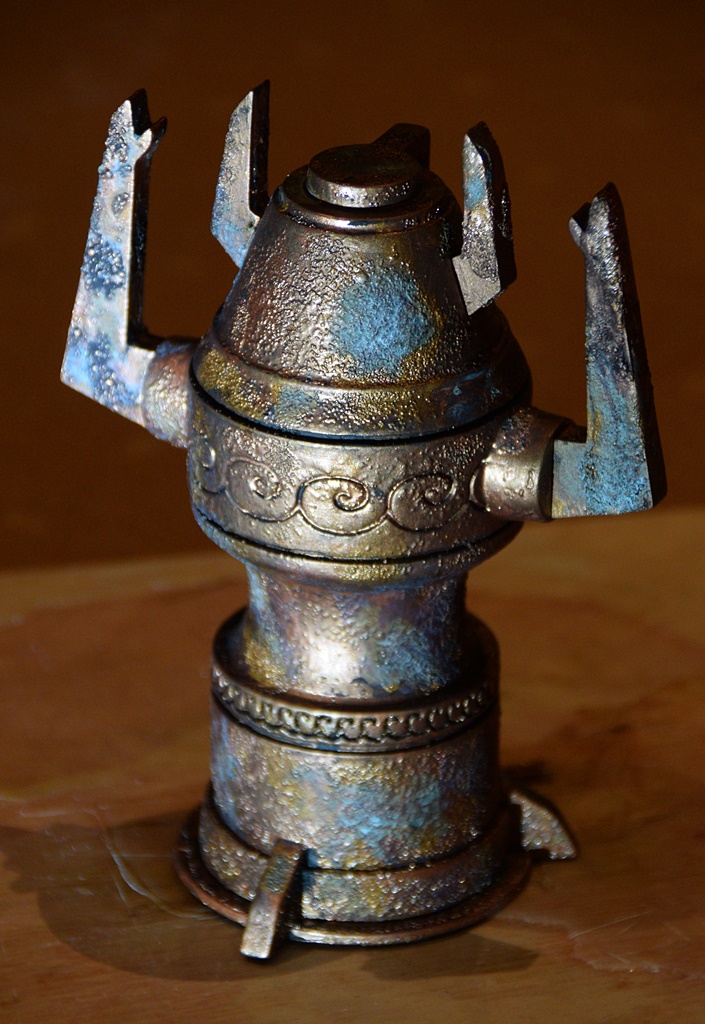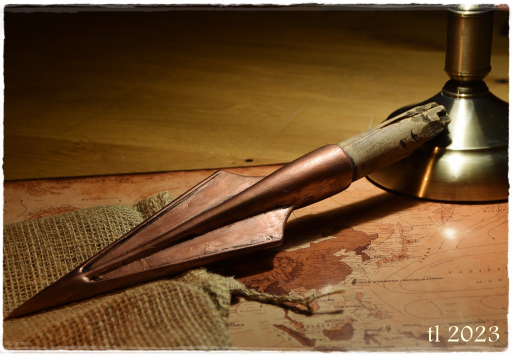 Manche mögen braune Eisen-Oberflächen mit Rost, andere hingegen wollen einen Speer der so aussieht, also wäre er aus einer Aluminium-Legierung. So unterschiedlich sind halt die Geschmäcker. Diese Farb-Version ist was für unsere Alu-Freunde. Es sei ihnen gegönnt.