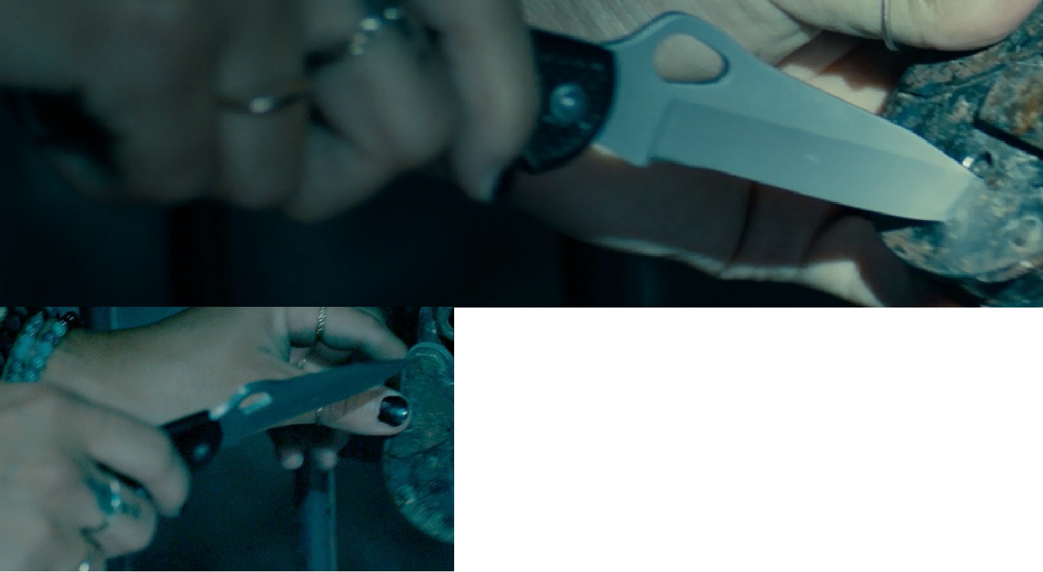 Hallo, ich bin auf der Suche nach dem unten abgebildeten Messer (aus dem Film "Uncharted"). Es ist eine Art Spyderco, mit geriffeltem, schwarzen Kunststoff-Griff. Markant ist wohl das Klingen-Loch. Kennt jemand so ein Messer bzw. die Marke etc.? Würde mich über Tipps freuen.