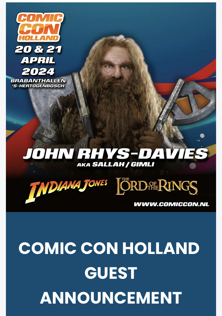 Bei der oben genannten Comic Con Holland ist auch Paul Freeman dabei. Comic Con Holland