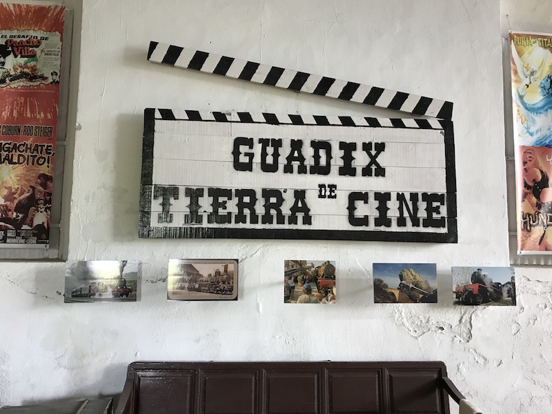 Der Tag begann damit, dass die alte Dampflok RENFE (Baureihe 140) in ihrem Depot gestartet werden sollte und dort auch ebenfalls ein kleines Filmmuseum untergebracht ist. Klang leichter, als es war. Denn wir mussten eine ganze Weile nach dem richtigen Ort suchen (Die Spanier halten nix von Beschilderungen) aber nach ca. 20 Minütigen Fahrt haben wir ein paar Ruinen gefunden und dort im Hinterhof stand eine große, ebenfalls schon arg mitgenommene Halle mit der Lok. Die Lok war vor die Halle gefahren worden, während im hinteren Bereich des Gebäudes ein kleines, aber feines Filmmueseum aufgebaut war. U.a. mit Szenenfotos aus Dr. Schiwago, wo die Eisenbahn auch schon einen "Auftritt" hatte und auch von "Zwei glorreiche Halunken", was mich natürlich sehr gefreut hat. (Von dem Film hatte ich auf dem Weg nach Guadix schon Drehorte besucht)