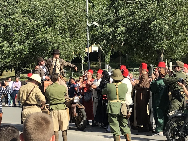 Ja, Ersatz für die Motorradstuntshow war genügend vorhanden. Ich glaube drei Gespanne vom Typ BMW R 75 waren im Einsatz. Die Spanier waren da sehr schmerzbefreit. Da stimmte alles, bis aufs letzte Hakenkreuz an Maschine und Uniform. Und am Samstag und Sonntag war bei einem auch das MG auf dem Beiwagen montiert.