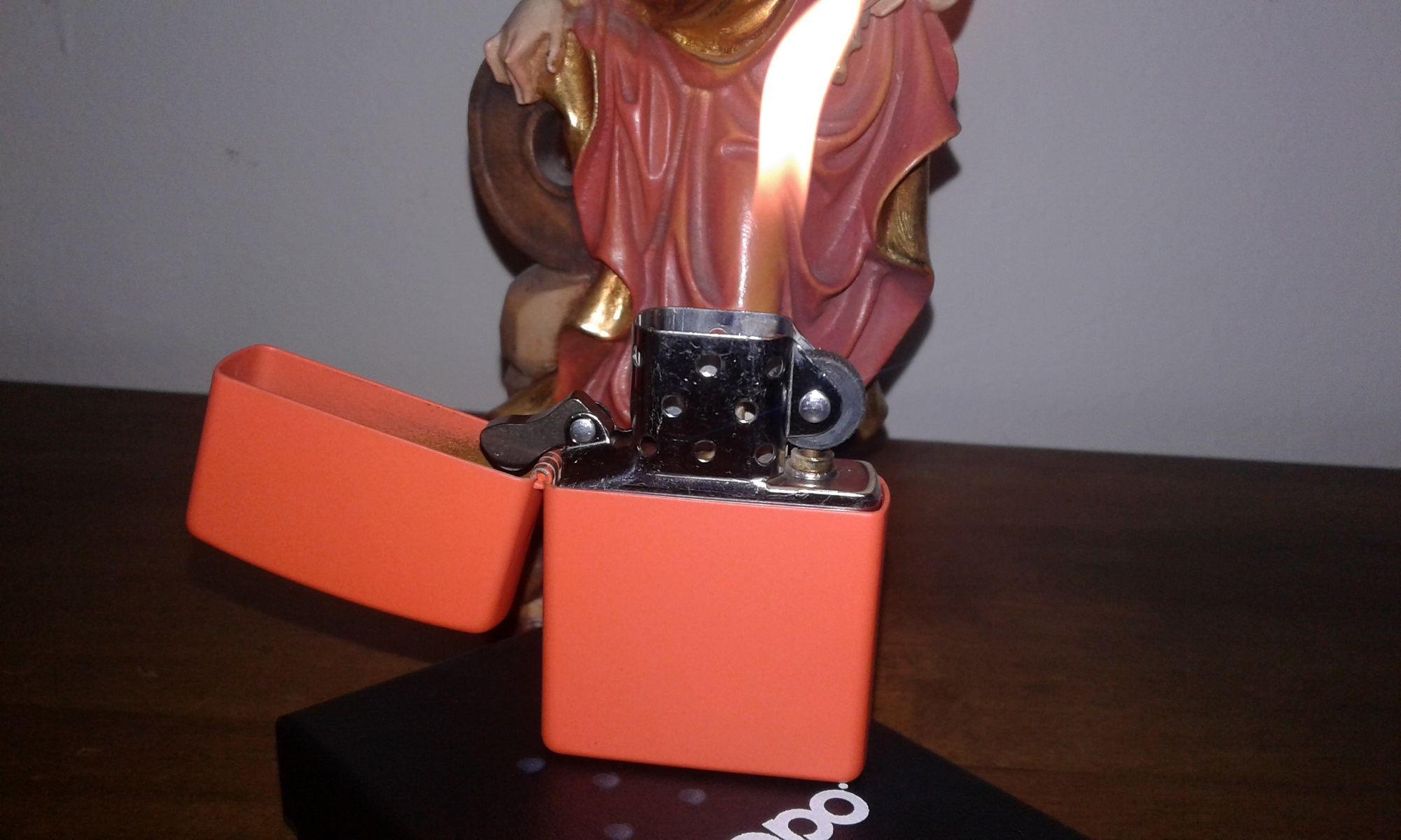Ich habe schon öfter überlegt mir ein Feuerzeug zuzulegen, auch wenn ich absoluter Nichtraucher bin. Aber manchmal wäre eine kleine Flamme schon praktisch, vor allem bei Situationen, wo der Feuerstahl (ja, sowas habe ich immer dabei) nicht anwendbar ist.