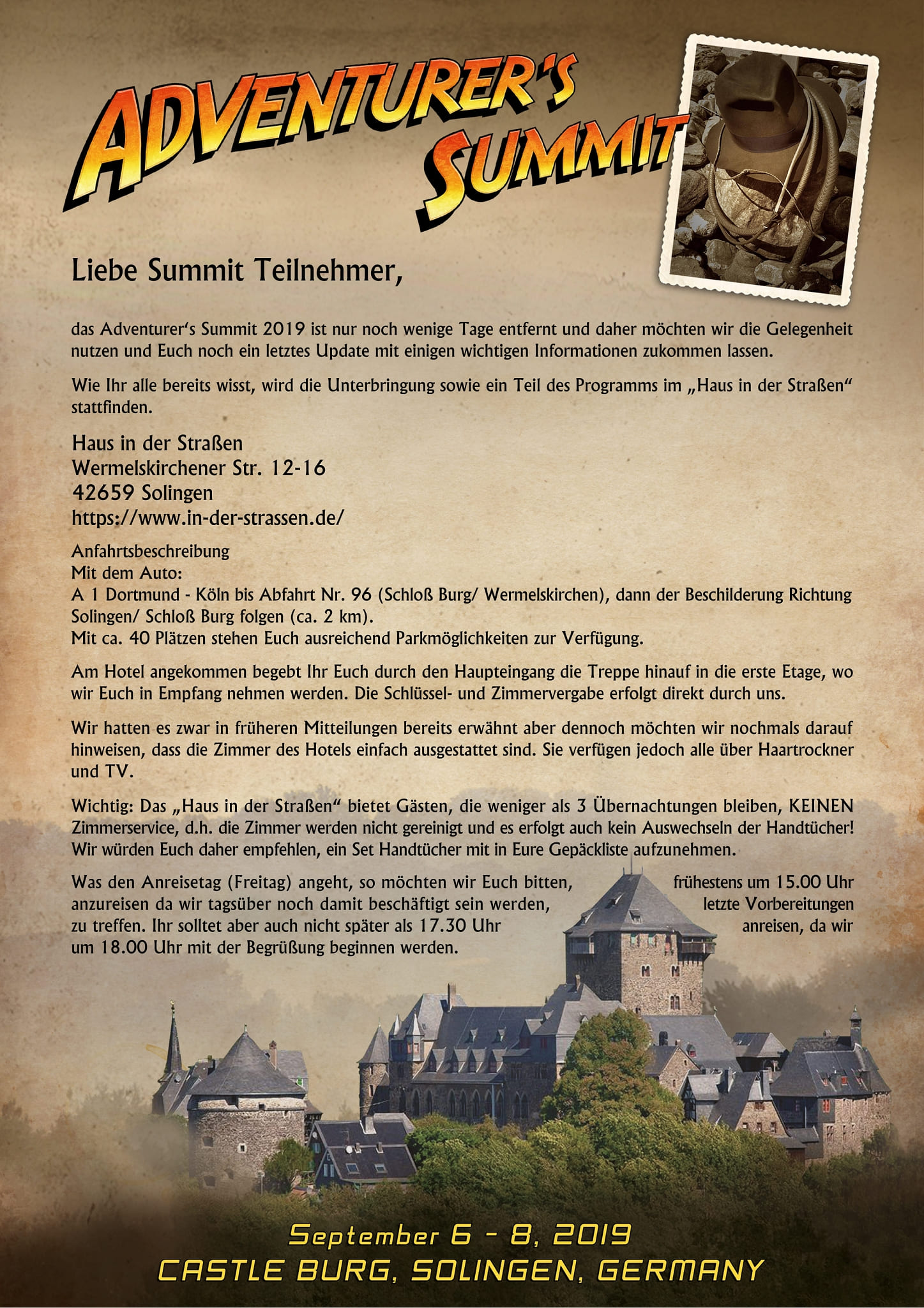 Betreff: Re: Adventurer’s Summit 2019 Schloss Burg, Solingen – Teilnehmerliste & Programm