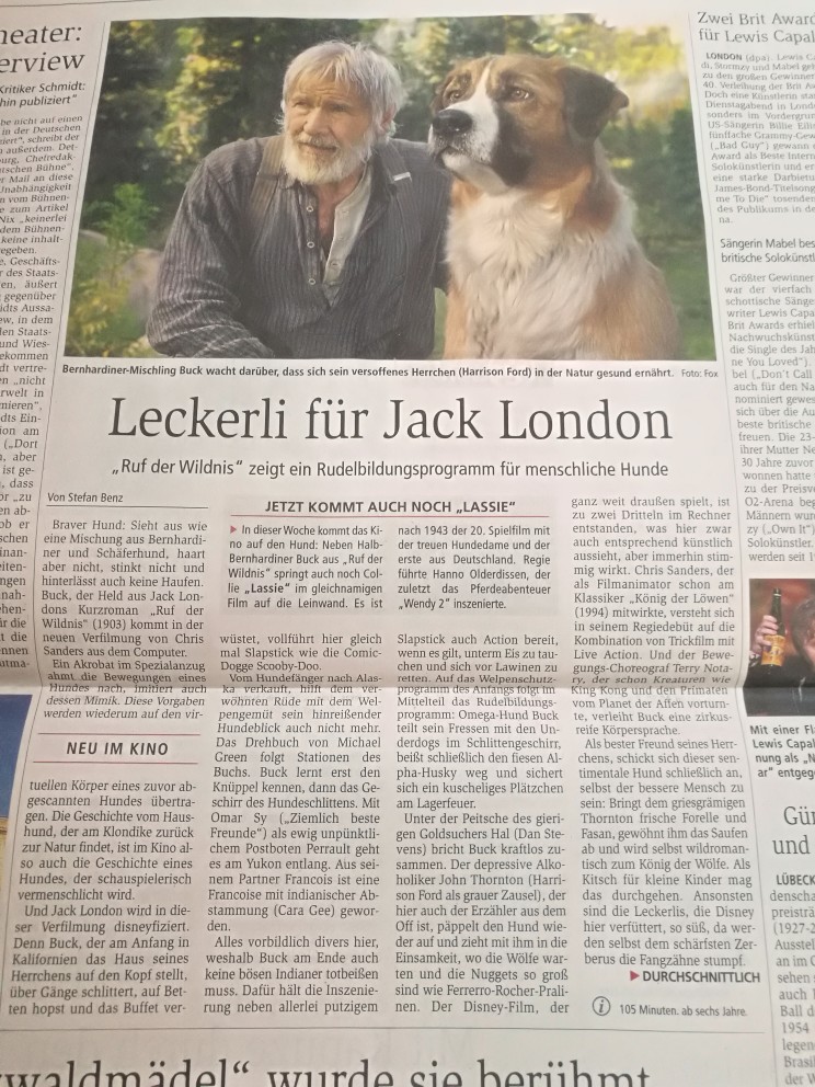 "Update": Ich stelle es mal hier rein: Ein Podcast über Ruf der Wildnis und ein bisschen wird auch über Indy 5 geplaudert; höre es mir auch gerade an: http://www.filmstarts.de/...29682.html