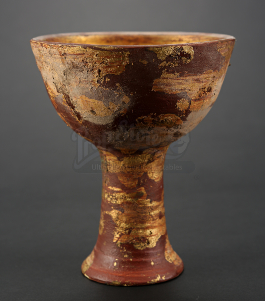 Nun zu The Last Crusade: Dort ist der wahre Gral der einfache "Becher des Zimmermanns", der aber bekanntermaßen nicht mit dem prachtvollen Kelch auf dem Bild übereinstimmt. Dieser wird jedoch auf dem Bild zum Auffangen des Blutes verwendet.