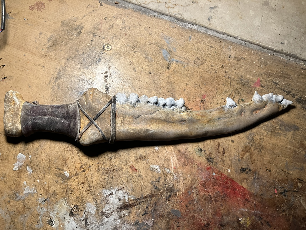 Das ist von der Idee und in der Umsetzung absolut realistisch und gut gemacht. Woher sollte Kain in der "Biebelsteinzeit" schließlich eine Metallklinge gehabt haben. Das Leder am Griff kommt mir auch irgendwie bekannt vor.