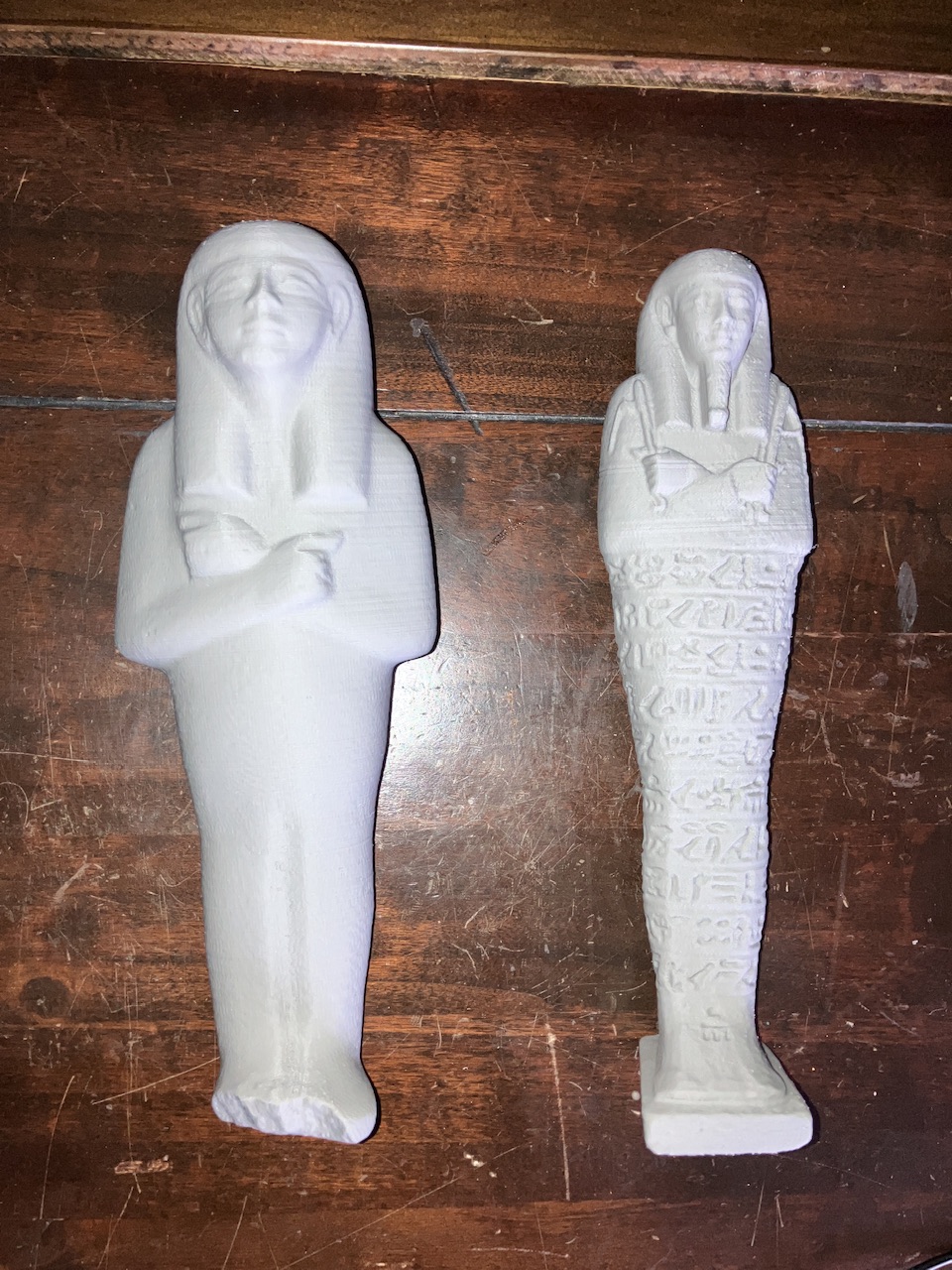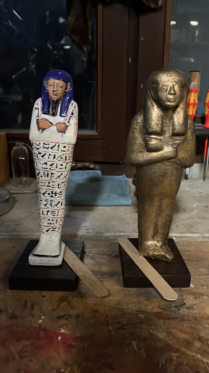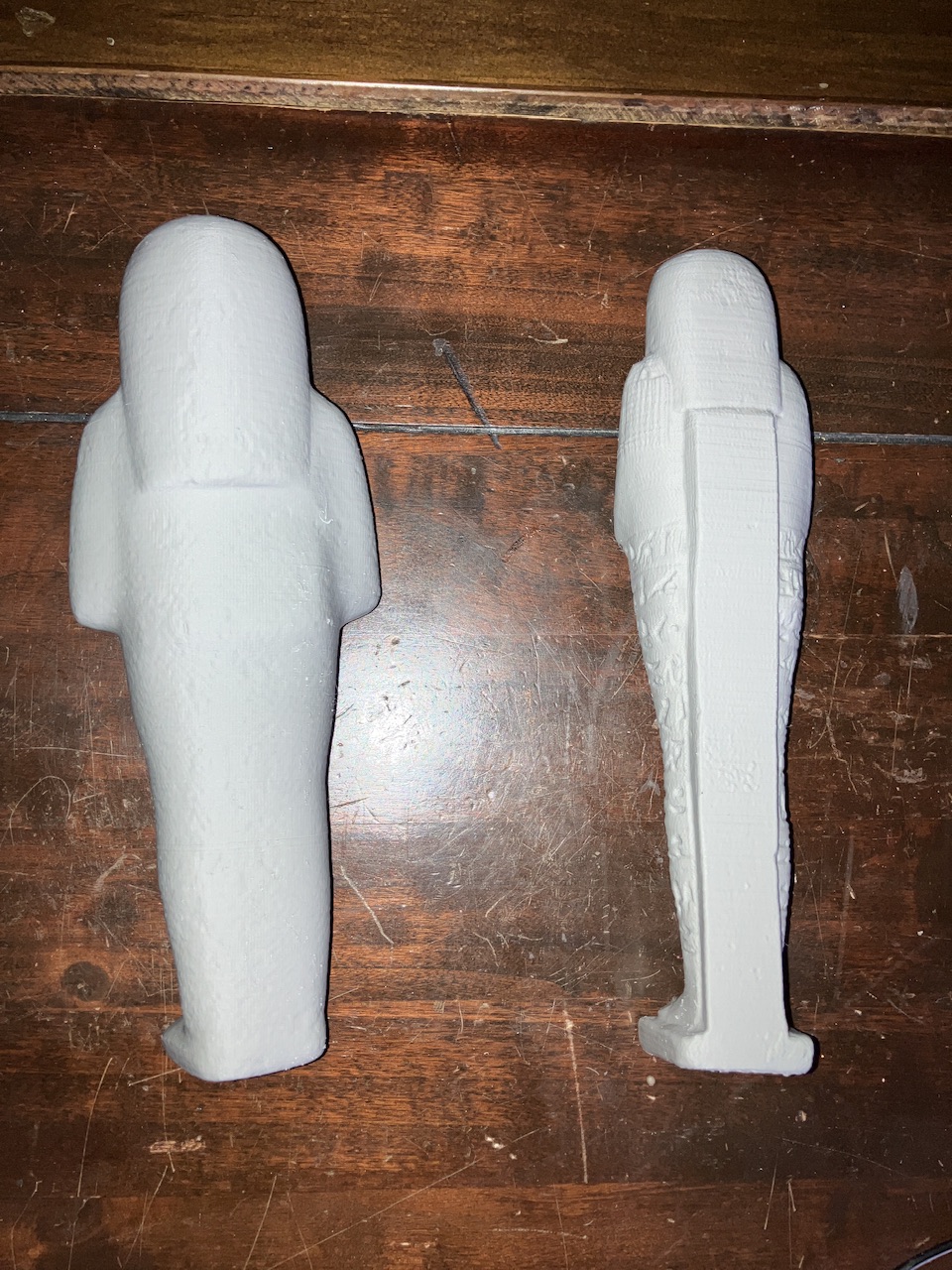 Zwei Projekte für extern. Dann reichts auch vor Weihnachten. Zwei alte Ägyptische Figuren oder auch Shawabti genannt und die Obi Wan Täschchen. Beides 3D gedruckt. Die Figuren wie immer vorbereitet und bemalt. Der Sockel ist aus Holz. Die Taschen sind mit Leder bezogen und gefärbt. Haben hinten auch einen Clip zum Befestigen am Gürtel.