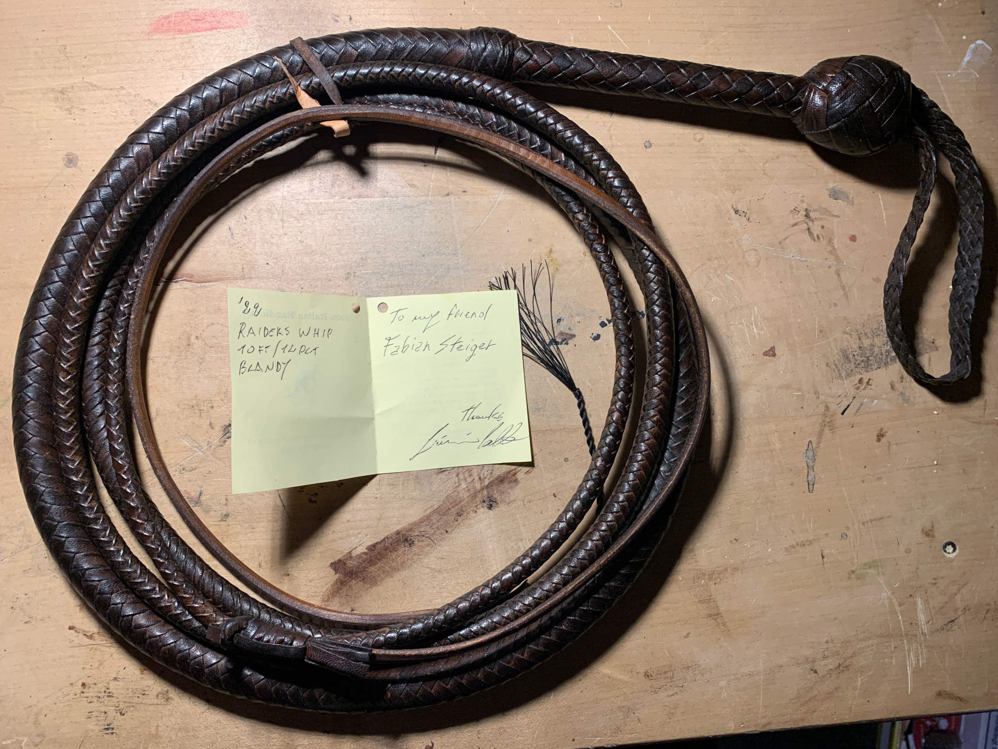 Zitat:Hier nun mein neues Schätzchen. 10ft Raiders Bullwhip in Dark Brown von Giovanni Celeste. Sehr schönes Teil, Glückwunsch!