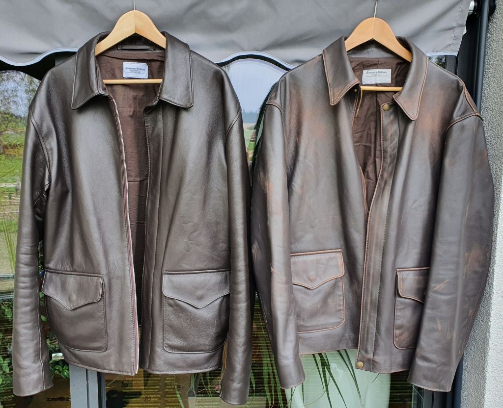 Die Kreuzzugsjacke ist zwar distressed, aber man sollte trotzdem den helleren Farbton des Leders noch erkennen können. Zusätzlich ist die Raiders etwas steifer und hat einen ganz anderen Schnitt.