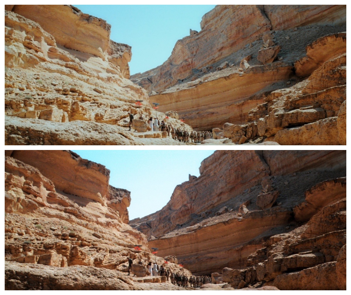Zitat von Kalmanitas:Naja, im direkten Vergleich sieht jede Szene deutlich besser aus. Bei Raiders ist das Color Grading ein absoluter Zugewinn. Und natürlich das etwas detailliertere Bild. Zitat von Kukulcan:Da geht's ja um die Farben bzw. andere auflösungsunabhängige Änderungen Ach so, dann brauche ich doch noch etwas mehr Hilfe von Euch. Warum ist jetzt in diesem Beispiel die Farbe im 2ten Bild deutlich besser? https://indiana-jones-forum.de/...&id=21890 Ja, der Himmel ist blasser und hat einen Farbverlauf. Die Felsen sind ein wenig rötlicher. Aber warum ist das besser?