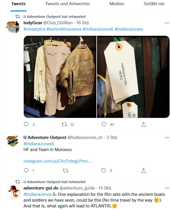 Ich nehm an sie drehen gerade mit Stuntman und Ford wird maximal später für Story Szenen anreisen, wenn nicht sogar eher im Studio drehen. Man hat ja auch wieder etwas Zeit gewonnen und es ist wahrscheinicher, dass er am Set erscheinen wird. Abr wer weiß das schon Eine neue Quelle behauptet, dass in Marokko wohl viele WW2 Waffen und Fahrzeuge teil der Produktion wären. Mir kam hier ein neuer Gedanke. Vielleicht jagt Indy das Artefakt bereits seit Jahren. Anstatt Zeitreisen sehen wir unterschiedliche Ausschnitte aus unterschiedlichen Epochen. Würde Sinn machen, dass ein alternder Indy sein halbes Leben immer wieder knapp davor war dieses Rätsel zu lösen und dass er nur aus diesem Grund im vortgeschrittenen Alter, sich erneut auf die Reise begiebt.
