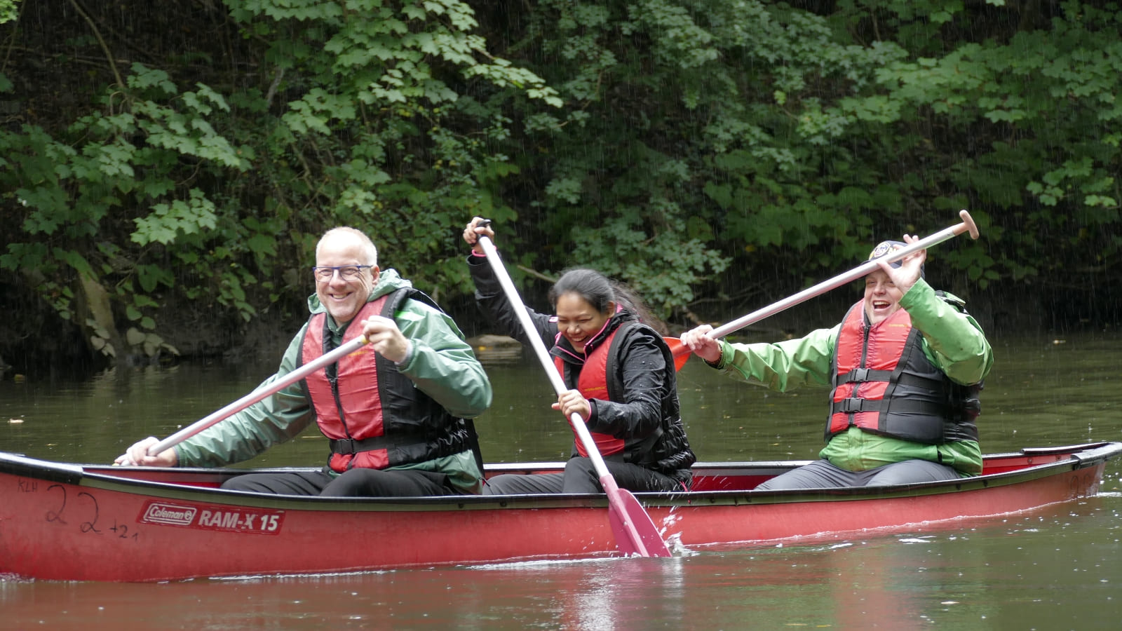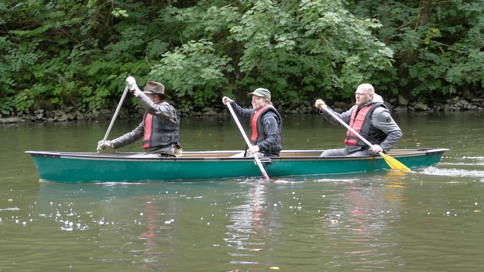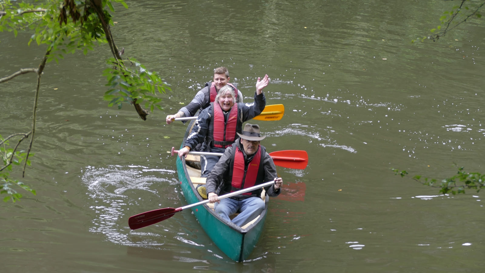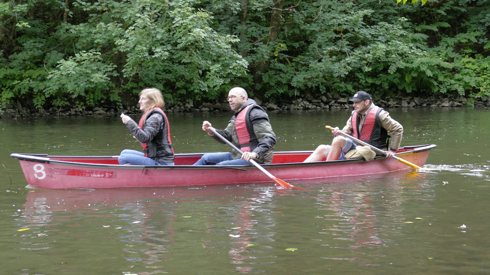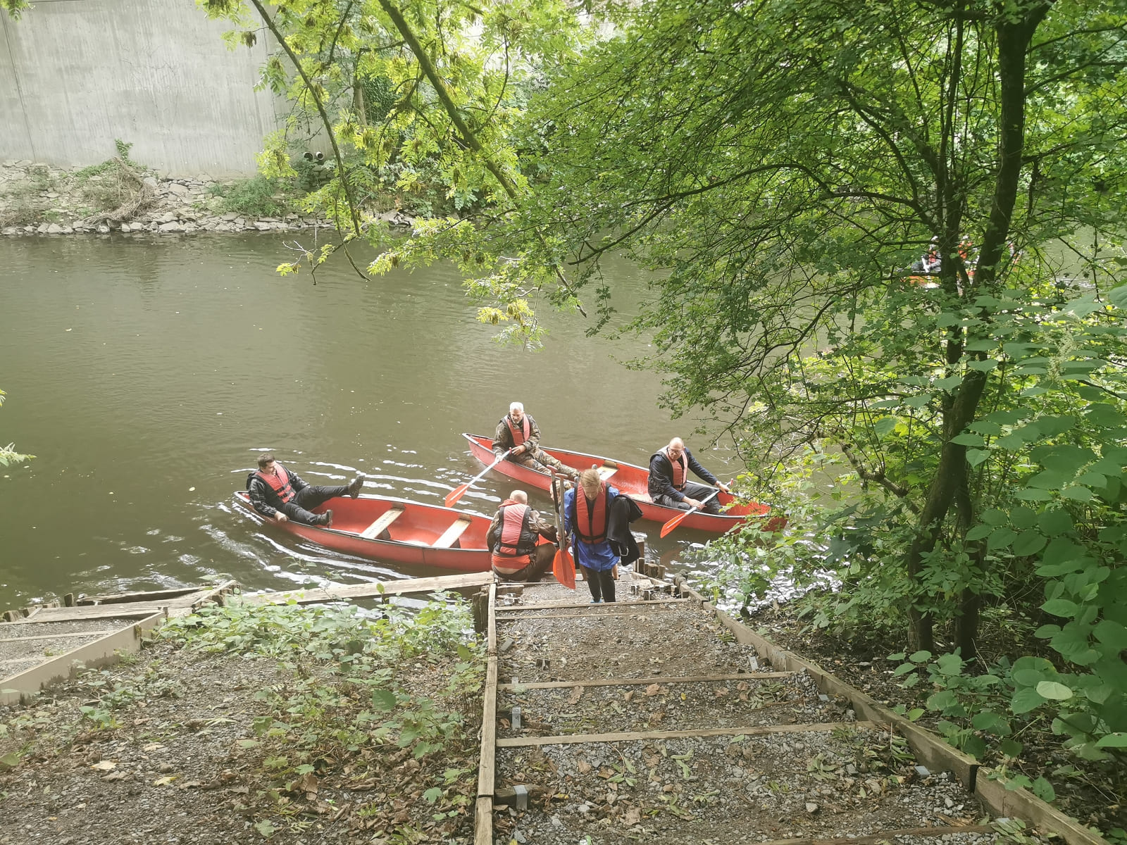 Björn hat ja zu seinem Glück beim Zwischenstop zu uns gewechselt. Deshalb sind Gerd, Fabian und Petra untergegangen und Björn, Martin und ich sind trocken geblieben. also doch nur 2 Boote?