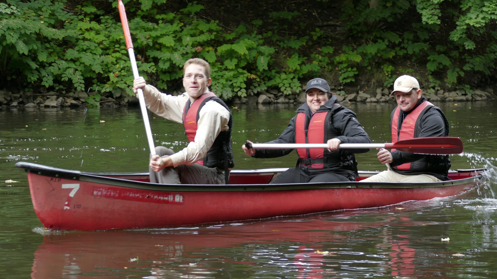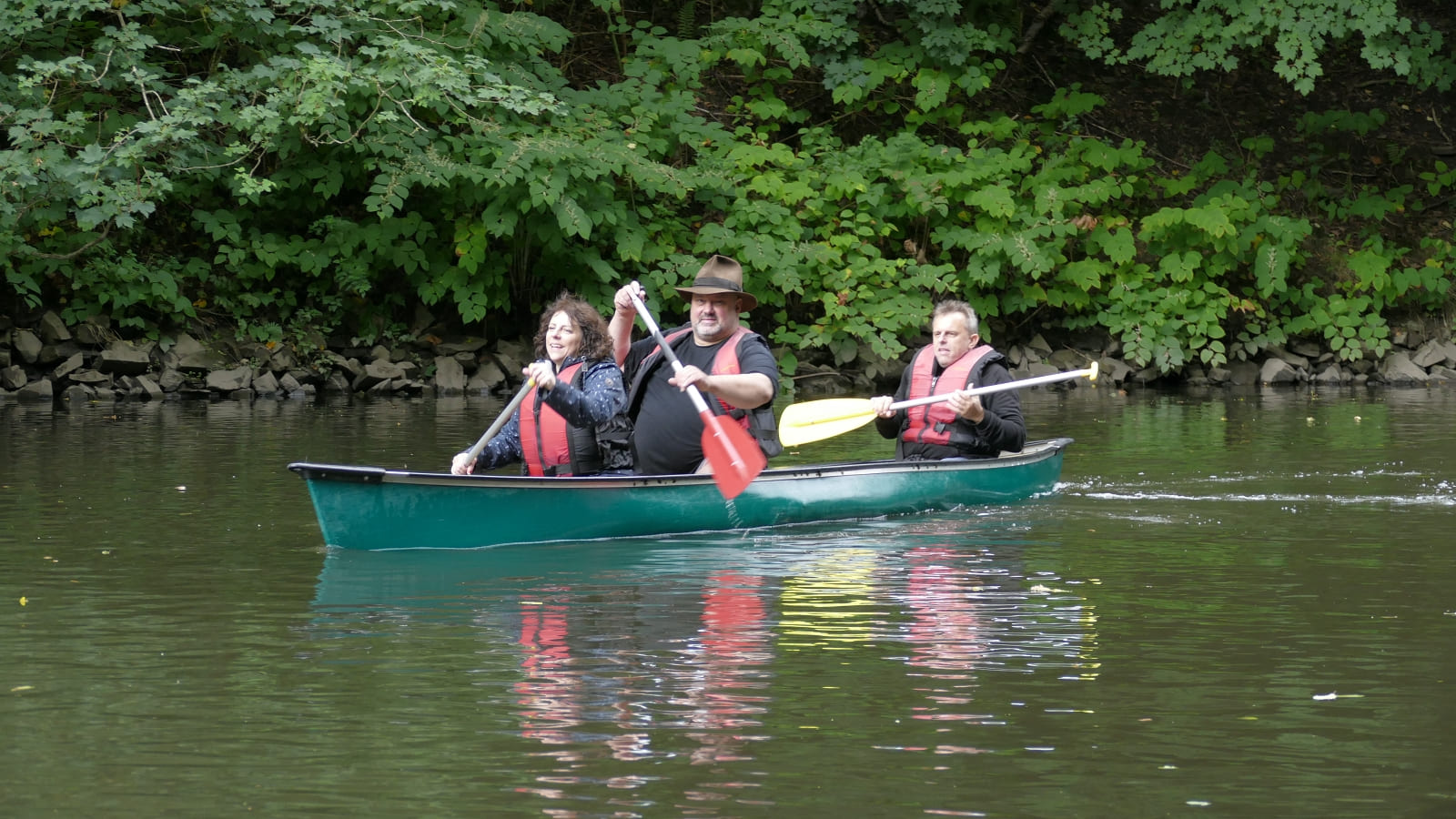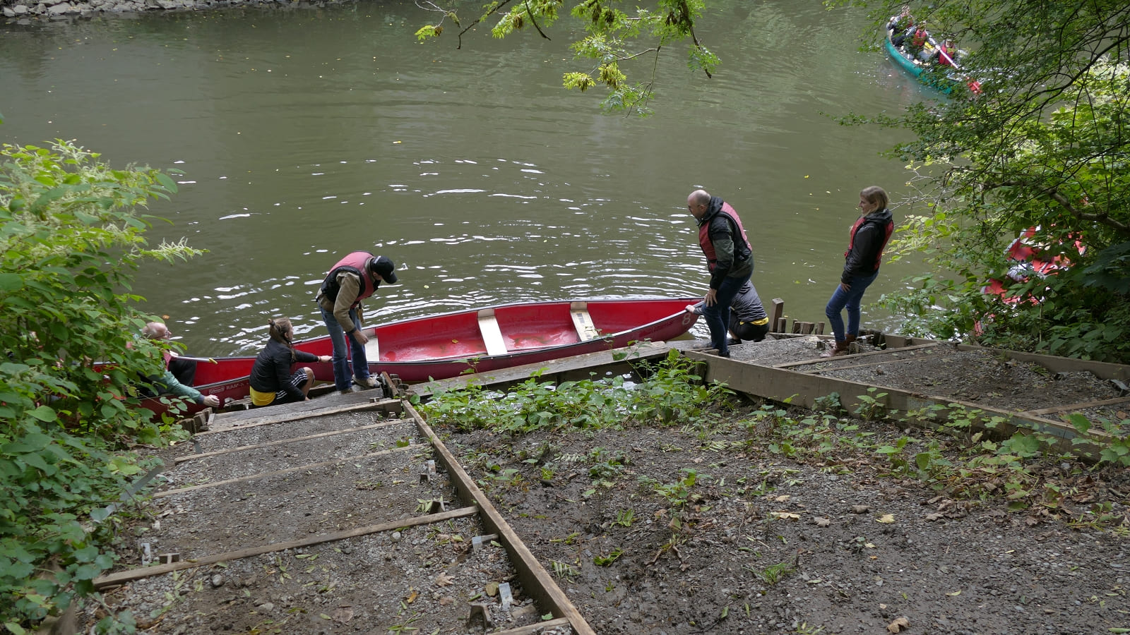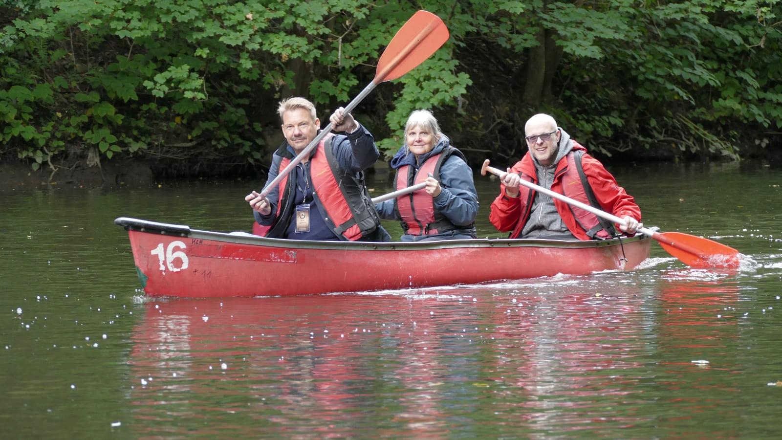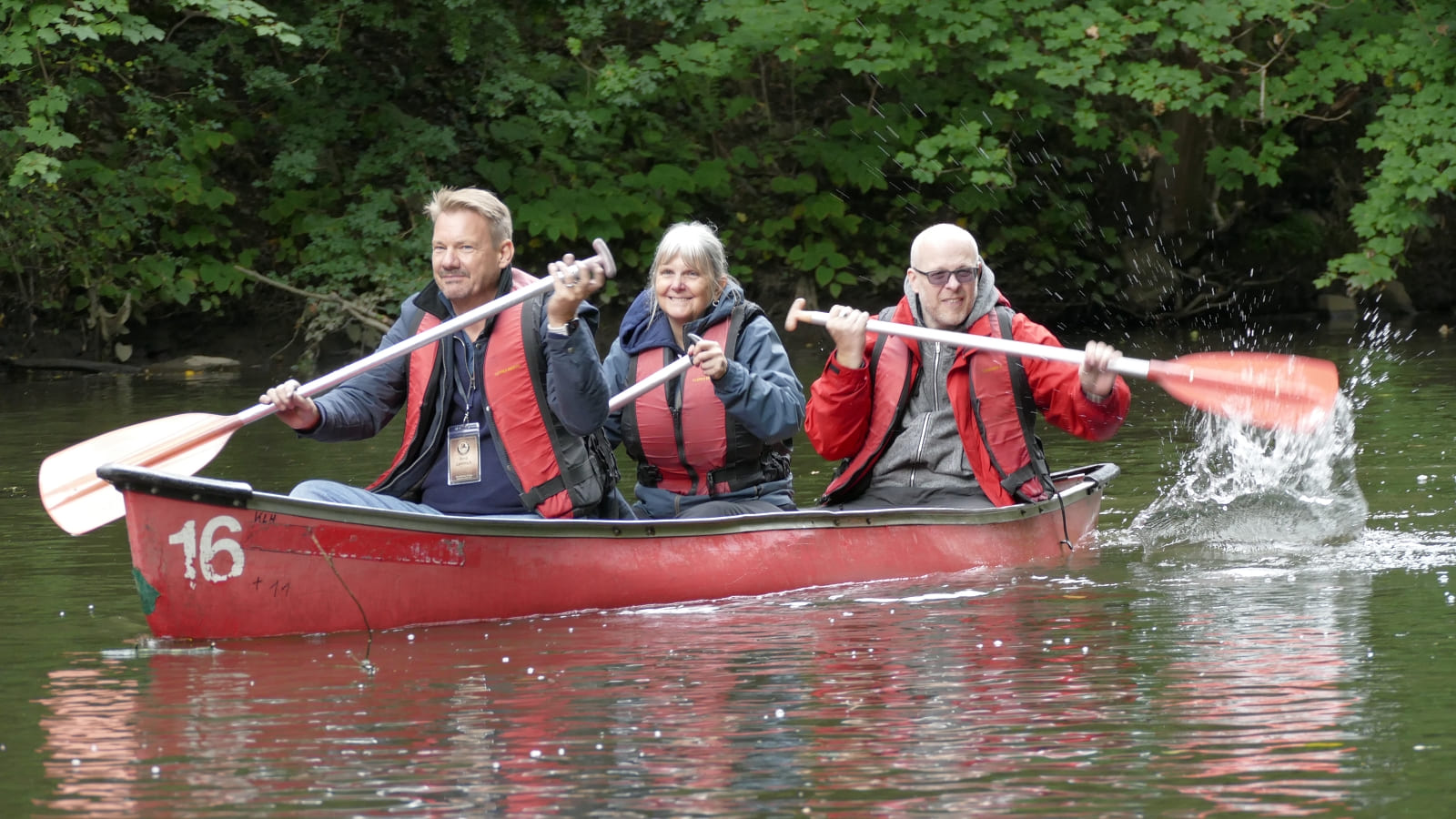 Björn hat ja zu seinem Glück beim Zwischenstop zu uns gewechselt. Deshalb sind Gerd, Fabian und Petra untergegangen und Björn, Martin und ich sind trocken geblieben. also doch nur 2 Boote?
