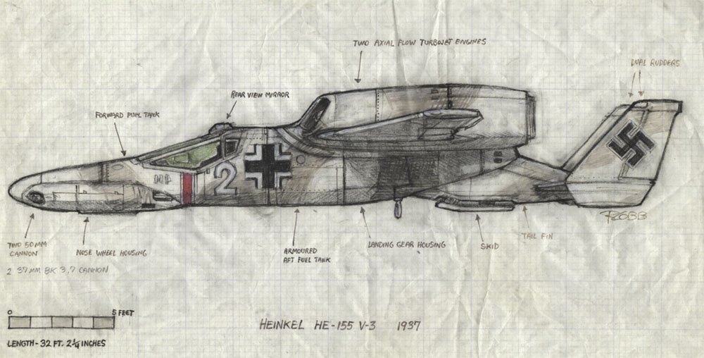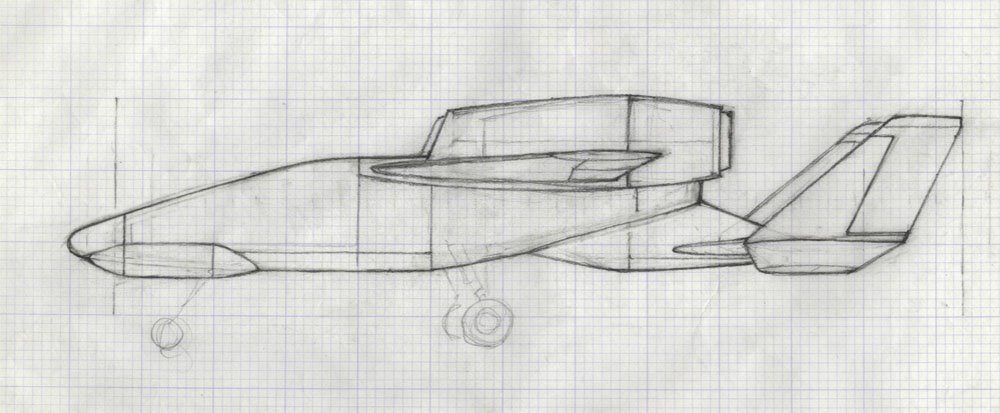 Diese weggeworfenen Skizzen wurden vom Konzeptkünstler Ron Cobb für Raiders angefertigt, um das Flugzeug zu veranschaulichen, das die Bundeslade von Tanis abtransportieren sollte.
