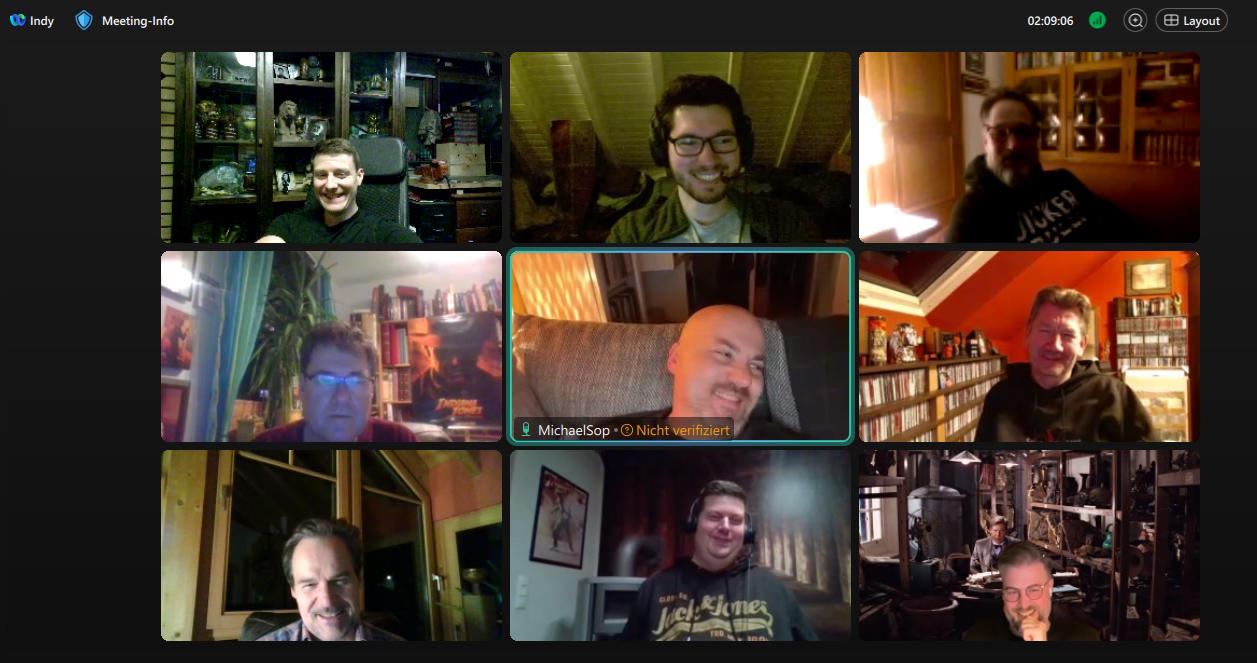 Der nächste Virtuelle Stammtisch Q&A findet am Freitag, den 02.02.2024 ab 20 Uhr voraussichtlich statt. Mögliche Themen: - Neues Videospiel "Indiana Jones und der Große Kreis" - Adventurer's Summit - Live Indiana Jones Stammtisch (mit körperlicher Anwesenheit in alter Tradition) - Gamescon-Teilnahme 2024 als Indyfangruppe - Preisverleihungen mit Indy 5 Nominierung - Austausch rund um Filme, Serien und Props Bleibt gesund und bis bald. Link folgt wie immer kurz vor dem Gruppen-Video-Chat.