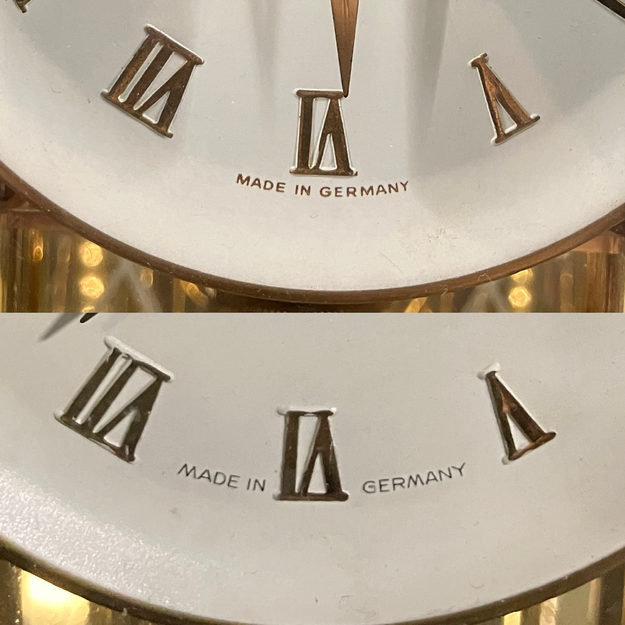 Ich gebe mal einen Tipp ab. Ich denke es ist das obere Zifferblatt mit der Schrift zentral darunter.Das andere Zifferblatt ist mir für "Made in Germany" zu unsauber gefertigt. Auch der Schrifttyp passt besser in die damalig Zeit.