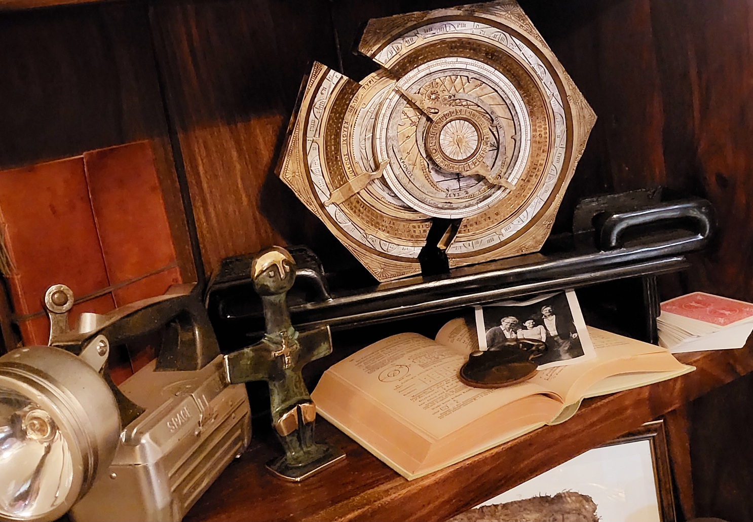 Zitat von MichaelSop:Zitat von TheTravelingPianoMan:Und wieder darf ich euch einen Neuzugang präsentieren! Archimedes Dial kam heute, nach über 4 Monaten Verspätung, endlich in meinem Sammelsurium an. Zwar waren ein paar Details abgesplittert, aber nichts, was ein wenig Sekundenkleber, etwas acrylic Farbe und Geduld nicht wieder gerichtet hätten. Ausserdem war es mir so out of box eh zu sauber für ein über 2.000 Jahre altes Teil! Maker war hierbei der Tigersharkshop Bruce, zwar angeblich nicht der leichteste Handelspartner, aber da es ein Hochzeitsgeschenk war, habe ich kaum mit ihm kommuniziert. Man muss ihm aber seinen guten Ruf als Propmaker lassen, er weiß was er tut. In den nächsten Tagen präsentiere ich euch ein Stück aus Temple of Doom, das der fabilouse Fabian gemacht hat! Sehr schönes Teil, obwohl für mich noch etwas zu scharfkantig. Aber das läßt sich wahrscheinlich auch nicht so einfach nachmodellieren, oder? Trotzdem sehr sehr gelungen. Viel Freude damit Läßt sich der Kompass auch entfernen? PS: Glückwunsch nachträglich zur Hochzeit. PPS: Wo kriegt man den Basils Diary zu kaufen? Also abschleifen würde ich ein knapp 400 Euro teures Prop nur ungern, in Hand schauts aber schon mega geil aus! ;-) Danke für die Glückwünsche! Basils Diary ist eigentlich nur ein: Das große Buch des Allgemeinwissens" aus den 40ern und ich hab halt eine Seite, die sich mit Kreisberechnungen befasst, aufgeschlagen! 😅 Aber schön, wenns das auch tut! Das Familienfoto hat der Fabian mir geschickt und die Lupe ist halt eine SA wie die von Helena im Film. Gibt's immer wieder mal auf der Bay. Cheers