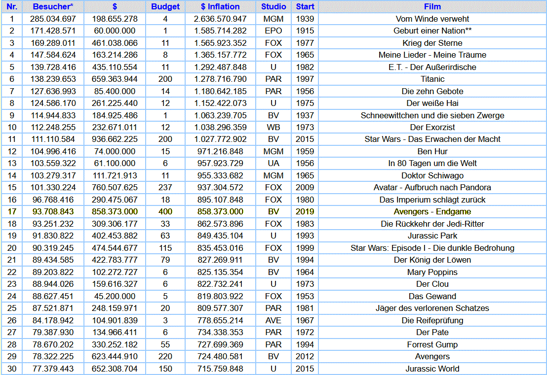 Betreff: Re: Erfolgreichste Kinofilme aller Zeiten