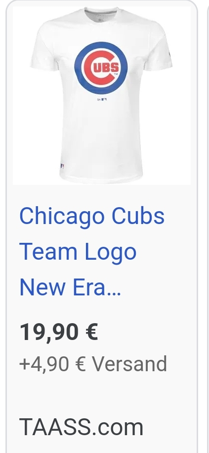 Zitat von EnnoA:Heute gefunden: Ich glaube nicht an HokusPokus Hi EnnoA, das ist das neue Cubs-Logo. Indy trägt das Logo aus den 50er/60er Jahren. Das aktuelle Logo zu finden ist natürlich kein Problem. @Darth: SA ist doch aber weiß und schlabberig.