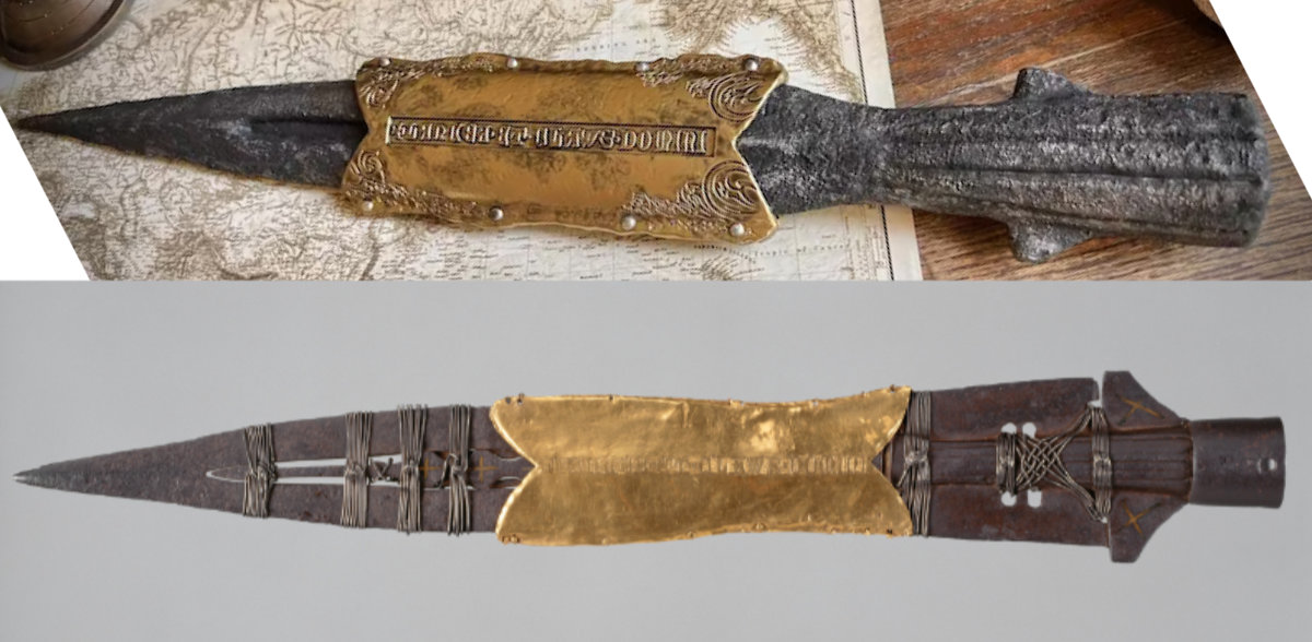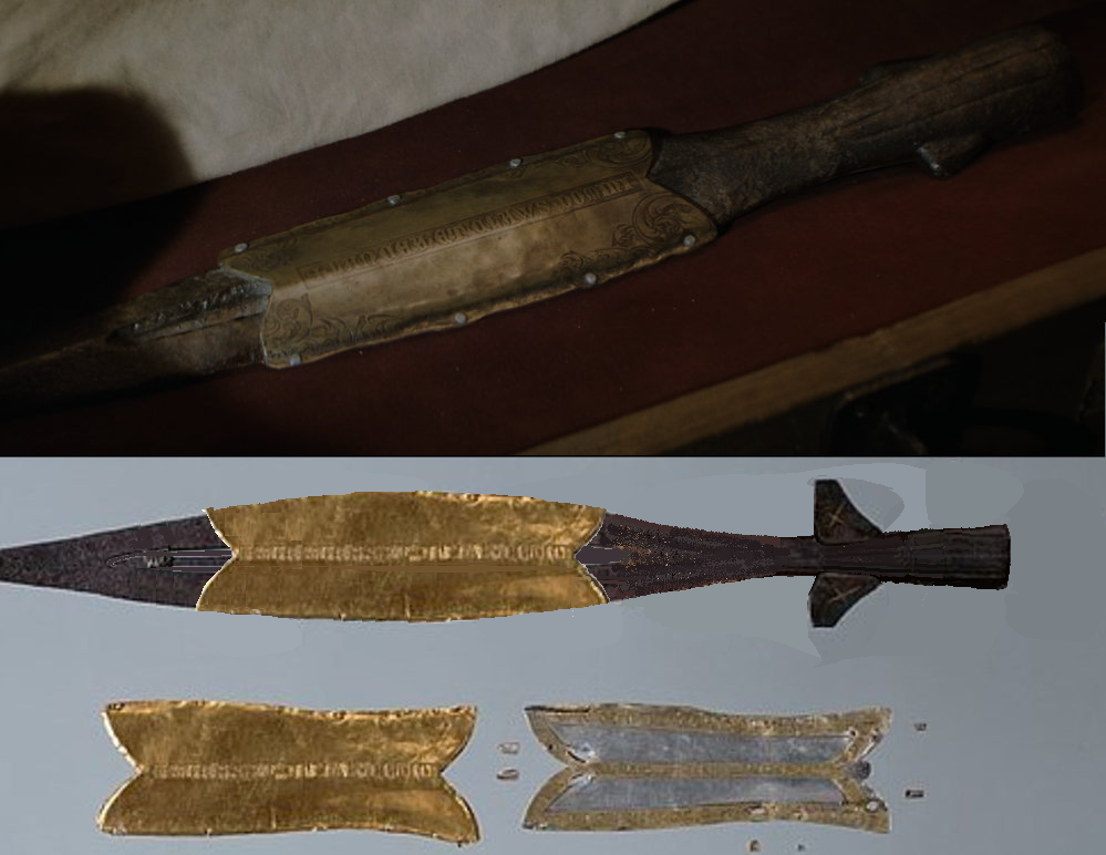Ich habe die Lanze nicht "bearbeitet", sondern "nur die Flügel versetzt". Der Draht ist nur drumgewickelt und kein Bestandteil der Lanze. Ja, die Flügel sind beim Original-Prop kleiner & anders geformt als als bei der Wien-Lanze. Insgesamt ist die Wien-Lanze auch einen viel ausgeprägteren Schwung an der Seite. Ansonsten sehe ich kaum Abweichungen.
