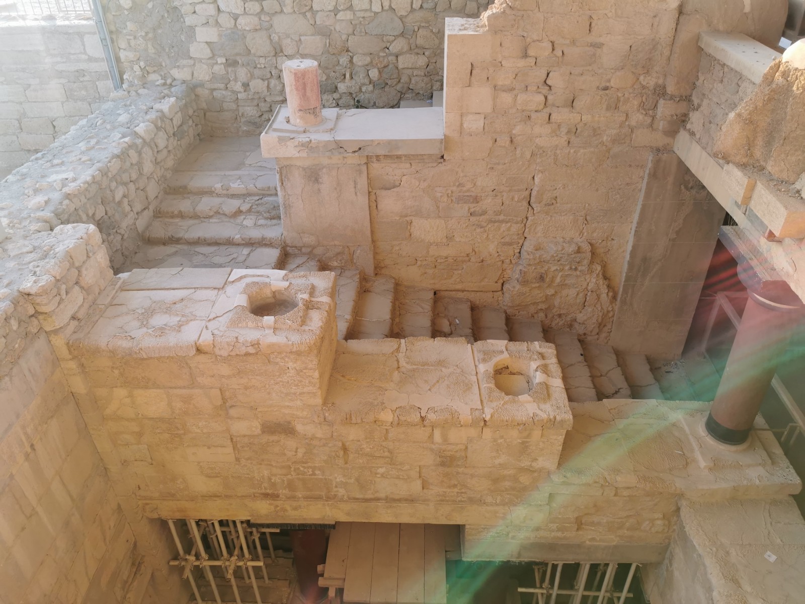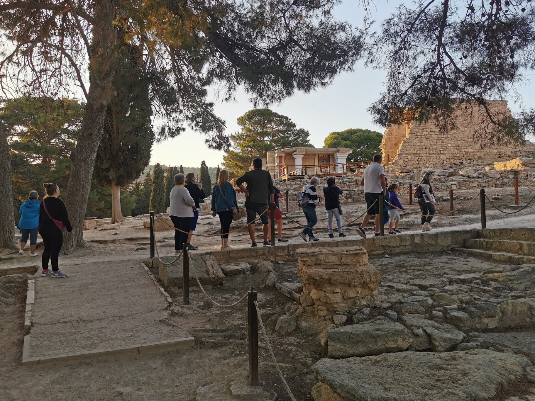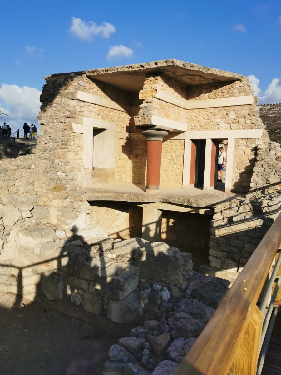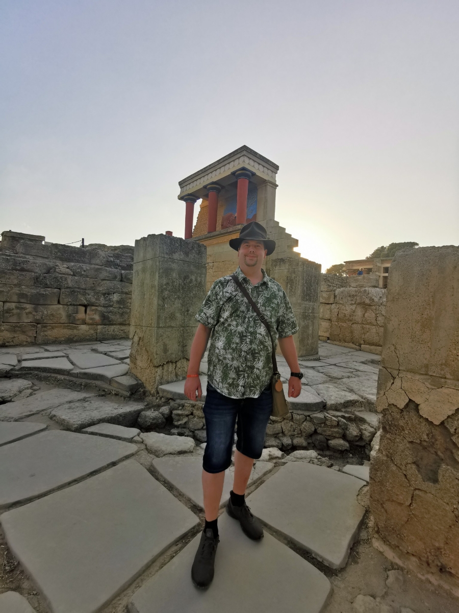 Wir starteten gestern Morgen um 8:30 Uhr. Treffpunkt war der bereits im Winterschlaf befindliche Mc Donalds in Malia. Dort holte uns ein großer, weißer Setra Bus ab. Der Bus war überpünktlich um 8:29 Uhr da und die äußerst kompetente Reiseführerin Eirene von Cretan Odyssey empfing uns in perfektem Deutsch vor dem Bus. Der Bus war zu 50% gefüllt mit deutschsprachigen Urlaubern und als wir eingestiegen waren, da war die Gruppe vollzählig und wir fuhren direkt zur Lasithi Hochebene. Unser erster Stopp war dort hoch oben an einer Taverne am Sattel (Sélla), bei den alten Windmühlen aus dem 15. Jahrhundert, wo weitestgehend nur noch Mauerreste an einem Bergkamm stehen. Weiter fuhren wir in ein altes Kloster auf dem Lasithi Plateau. Dort erfuhren wir die wechselhafte Geschichte und die immer wieder stattgefundene Verteilung des Landes an die Kleinbauern. Venezianer, Osmanen und Deutsche hatten in der Vergangenheit versucht die Lasithen und die orthodoxe Kirche zu beugen. Die Lasithen haben unter anderem das Kloster, wo wir waren, immer wieder aufgebaut und ernähren sich durch fleißiges Beackern der Hochebene und pflegen ihre Kultur. Heute leben in dem Kloster noch 3 Mönche. Das Kloster wurde nach 1945 wieder komplett aufgebaut. Die Lasithen haben nämlich in der Geschichte immer wieder bewaffneten Widerstand geleistet. Im Kloster haben wir das Innere der Klosterkirche bestaunt und einiges über die orthodoxe Liturgie von unserer Reiseleitung erfahren. Nach dem Besuch im Kloster ging es in einen Gutshof wo wir das alte Handwerk des Kerzen machens, Töpferns und zahlreiche Olivenprodukte kosten bzw. bestaunen konnten. Unter anderem gab es dort den Becher der Gerechtigkeit (Pythagoreische Becher) und einfache minoische Salzstreuer. Der Becher der Gerechtigkeit sieht aus wie ein gebrannter Tonkelch, der bei zu viel Flüssigkeit einfach Innen überläuft und die komplette Flüssigkeit durch Sogwirkung entleert. Wohl gemerkt nur wenn man ihn zu voll eingießt. Es soll symbolisieren, dass für jeden genug da ist, wenn man teilt, oder man nichts erhält. Sozusagen das „Wie gewonnen so zerronnen“ bildlich festhält. Meine Frau und ich kauften dort Olivenöle. Danach fuhren wir weiter. Es war bereits 12 Uhr und wir kehrten ein in einer typischen lasithischen Taverne am Wegesrand. Die typische lasithische Küche sind Schmorgerichte aus Pfanne und Topf. Also aßen wir was die Küche bereithielt. Geschmortes gefülltes Gemüse mit Kartoffeln und Bohneneintopf. Es gab natürlich auch Moussaka und geschmortes Hähnchen und Schweinebraten. Dazu hellenisches Fix Bier oder Softgetränke. Gegen 13 Uhr fuhren wir weiter und besuchten einen Friedhof auf einem Dorf und die älteste Platane des Hochplateaus. Der Baum ist bereits 2000 Jahre alt. Nun brachen wir auf und verließen wieder das Hochplateau in Richtung Hauptstadt Heraklion. Unser Ziel war nun die alte minoische Hauptstadt Knossos. Sie liegt vom alten Hafen aus (heute der Flughafen Heraklion) in gerader Verbindung über die Knossosstraße im Landesinneren. Knossos beherbergte zu minoischer Zeit den Minos (König von Kreta). Wobei die Könige und Königinnen gemeinsam herrschten und der Palast eben in Knossos war. Die Wiege der kretischen Zivilisation. Knossos hatte nie Stadtmauern. Es war immer auf den Handel mit anderen Völkern wie den Persern oder Ägyptern bedacht. Es wurden Olivenöl und zum Beispiel Gold miteinander gehandelt. Kreta war schon damals durch seine Lage im Mittelmeer als zentraler Warenumschlagsplatz von immenser Bedeutung. Bereits früh etablierte sich dort die Theokratie. Dem wohlhabenden kretischen Kaufmann, Juristen und Hobby-Archäologen Minos Kalokairinos gelang 1878 die Entdeckung Knossos'. Arthur Evans gilt als Entdecker der minoischen Kultur. Bekannt wurde er vor allem durch die Ausgrabung und Erforschung des minoischen Palastes von Knossos zu Beginn des 20. Jahrhunderts. Der Brite Evans war Kaufmann und kaufte dort Land und grub mit erheblichem Aufwand und zahlreichen Archäologen den Palast von Knossos wieder aus. Wobei er nur die Kirsche auf der Torte ausgrub. Bis heute sind etwa erst 45% der alten Stadt Knossos ausgegraben. Die Stadt erstreckte sich nämlich bis zu dem benachbarten Fluss und den umliegenden Hügeln. Vorort waren wir gegen 15 Uhr. Dadurch waren wir fast alleine in der archäologischen Ausgrabungsstätte unterwegs. Der Eintritt im Winter ab dem 1. November beträgt diese Saison noch 8 Euro pro Erwachsenen. Kinder aus der EU sind frei. Heinrich Schliemann wurde auch die Ausgrabung von Knossos angeboten, doch er bot damals zu wenig und war sich nicht sicher genug, dass er dort etwas finden würde. Evans hingegen hat nicht nur ausgegraben sondern leider auch mit Beton wieder einzelne Teile des Gebäudekomplexes nach den damaligen Vorstellungen um 1900 wieder rekonstruiert. Da wurden zum Beispiel Säulen aus Holz einfach aus Beton nachgebildet. Der alte Palast war nämlich teilweise vierstöckig und mit viel Holz aufgebaut. Es gab schon damals Fußbodenheizungen und die Abfälle wurden in Gruben entsorgt. Es gab zu minoischer Zeit schon Latrinen, Badewannen und Weinkeltern und der Palast von Knossos verfügte über Herrschaftsräume für König und Königin. Gefundener kostbarer Schmuck und Kämme aber auch Wandreliefe zeugen von einer großen Kultur. Der Palast ist in der langen Geschichte auch schon abgebrannt und Erdbeben zum Opfer gefallen, was Risse und Ruß belegen. Es gibt einen Thronsaal und einen Raum mit 🐬🐬 als Wandbemalung, die die Könige des Meeres symbolisieren. Außerdem gab es einen Innenhof, der für das jährliche Fest des Stieres, nicht vergleichbar mit Stierkämpfen in Spanien, genutzt wurde. Man fand dort auch einen kunstvoll verzierten Stierkopf der für Rituale Flüssigkeiten ausgoss, der heute im Archäologischen Museum von Heraklion ausgestellt ist. Wir machten vor Ort zahlreiche Fotos. Hatte auch das Buch Geheimakte Tartarus von André Milewski dabei, dass Knossos u