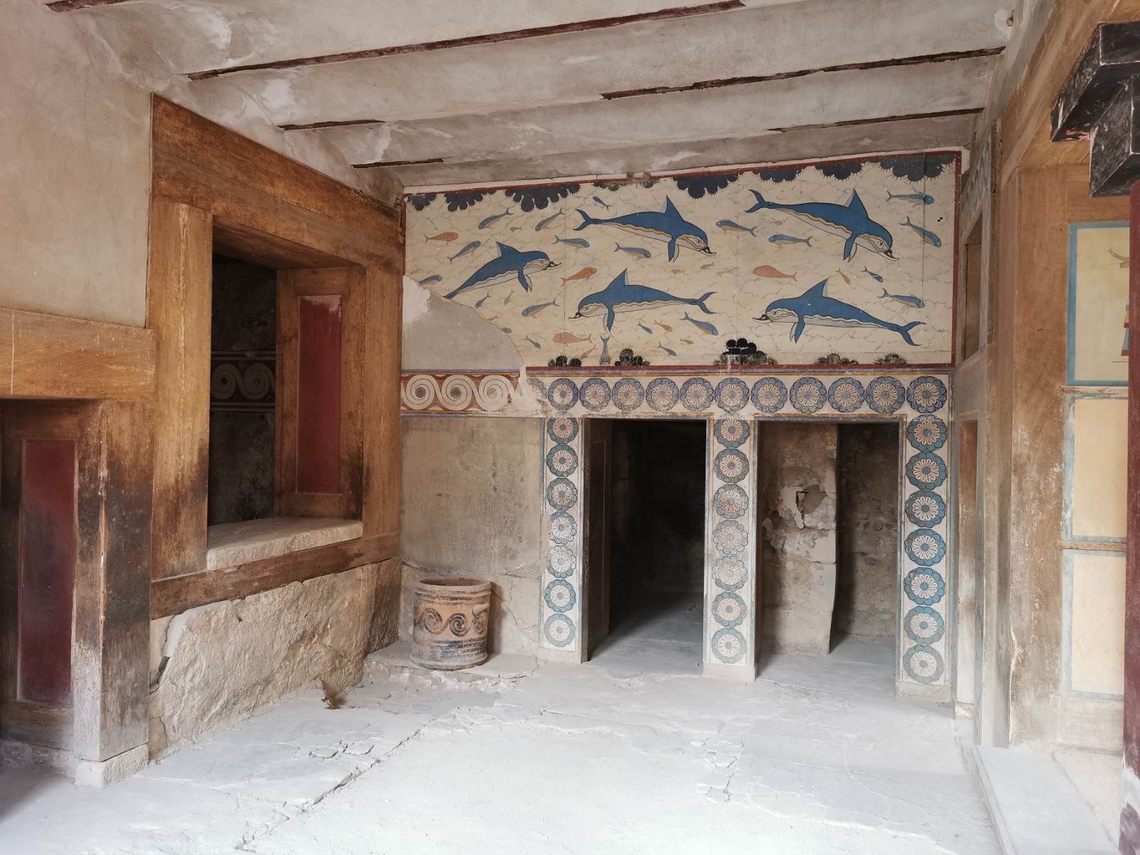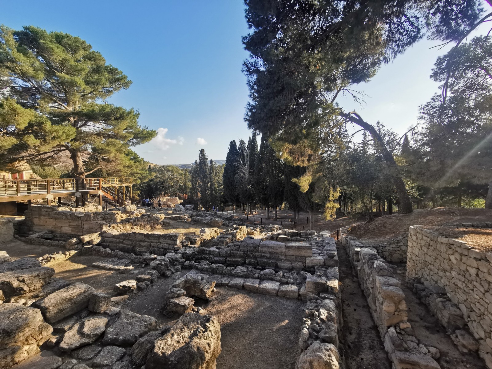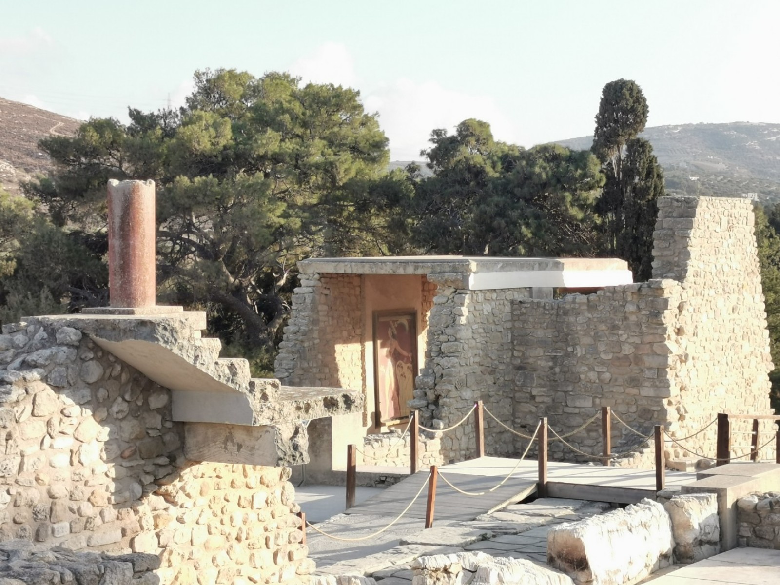 Wir starteten gestern Morgen um 8:30 Uhr. Treffpunkt war der bereits im Winterschlaf befindliche Mc Donalds in Malia. Dort holte uns ein großer, weißer Setra Bus ab. Der Bus war überpünktlich um 8:29 Uhr da und die äußerst kompetente Reiseführerin Eirene von Cretan Odyssey empfing uns in perfektem Deutsch vor dem Bus. Der Bus war zu 50% gefüllt mit deutschsprachigen Urlaubern und als wir eingestiegen waren, da war die Gruppe vollzählig und wir fuhren direkt zur Lasithi Hochebene. Unser erster Stopp war dort hoch oben an einer Taverne am Sattel (Sélla), bei den alten Windmühlen aus dem 15. Jahrhundert, wo weitestgehend nur noch Mauerreste an einem Bergkamm stehen. Weiter fuhren wir in ein altes Kloster auf dem Lasithi Plateau. Dort erfuhren wir die wechselhafte Geschichte und die immer wieder stattgefundene Verteilung des Landes an die Kleinbauern. Venezianer, Osmanen und Deutsche hatten in der Vergangenheit versucht die Lasithen und die orthodoxe Kirche zu beugen. Die Lasithen haben unter anderem das Kloster, wo wir waren, immer wieder aufgebaut und ernähren sich durch fleißiges Beackern der Hochebene und pflegen ihre Kultur. Heute leben in dem Kloster noch 3 Mönche. Das Kloster wurde nach 1945 wieder komplett aufgebaut. Die Lasithen haben nämlich in der Geschichte immer wieder bewaffneten Widerstand geleistet. Im Kloster haben wir das Innere der Klosterkirche bestaunt und einiges über die orthodoxe Liturgie von unserer Reiseleitung erfahren. Nach dem Besuch im Kloster ging es in einen Gutshof wo wir das alte Handwerk des Kerzen machens, Töpferns und zahlreiche Olivenprodukte kosten bzw. bestaunen konnten. Unter anderem gab es dort den Becher der Gerechtigkeit (Pythagoreische Becher) und einfache minoische Salzstreuer. Der Becher der Gerechtigkeit sieht aus wie ein gebrannter Tonkelch, der bei zu viel Flüssigkeit einfach Innen überläuft und die komplette Flüssigkeit durch Sogwirkung entleert. Wohl gemerkt nur wenn man ihn zu voll eingießt. Es soll symbolisieren, dass für jeden genug da ist, wenn man teilt, oder man nichts erhält. Sozusagen das „Wie gewonnen so zerronnen“ bildlich festhält. Meine Frau und ich kauften dort Olivenöle. Danach fuhren wir weiter. Es war bereits 12 Uhr und wir kehrten ein in einer typischen lasithischen Taverne am Wegesrand. Die typische lasithische Küche sind Schmorgerichte aus Pfanne und Topf. Also aßen wir was die Küche bereithielt. Geschmortes gefülltes Gemüse mit Kartoffeln und Bohneneintopf. Es gab natürlich auch Moussaka und geschmortes Hähnchen und Schweinebraten. Dazu hellenisches Fix Bier oder Softgetränke. Gegen 13 Uhr fuhren wir weiter und besuchten einen Friedhof auf einem Dorf und die älteste Platane des Hochplateaus. Der Baum ist bereits 2000 Jahre alt. Nun brachen wir auf und verließen wieder das Hochplateau in Richtung Hauptstadt Heraklion. Unser Ziel war nun die alte minoische Hauptstadt Knossos. Sie liegt vom alten Hafen aus (heute der Flughafen Heraklion) in gerader Verbindung über die Knossosstraße im Landesinneren. Knossos beherbergte zu minoischer Zeit den Minos (König von Kreta). Wobei die Könige und Königinnen gemeinsam herrschten und der Palast eben in Knossos war. Die Wiege der kretischen Zivilisation. Knossos hatte nie Stadtmauern. Es war immer auf den Handel mit anderen Völkern wie den Persern oder Ägyptern bedacht. Es wurden Olivenöl und zum Beispiel Gold miteinander gehandelt. Kreta war schon damals durch seine Lage im Mittelmeer als zentraler Warenumschlagsplatz von immenser Bedeutung. Bereits früh etablierte sich dort die Theokratie. Dem wohlhabenden kretischen Kaufmann, Juristen und Hobby-Archäologen Minos Kalokairinos gelang 1878 die Entdeckung Knossos'. Arthur Evans gilt als Entdecker der minoischen Kultur. Bekannt wurde er vor allem durch die Ausgrabung und Erforschung des minoischen Palastes von Knossos zu Beginn des 20. Jahrhunderts. Der Brite Evans war Kaufmann und kaufte dort Land und grub mit erheblichem Aufwand und zahlreichen Archäologen den Palast von Knossos wieder aus. Wobei er nur die Kirsche auf der Torte ausgrub. Bis heute sind etwa erst 45% der alten Stadt Knossos ausgegraben. Die Stadt erstreckte sich nämlich bis zu dem benachbarten Fluss und den umliegenden Hügeln. Vorort waren wir gegen 15 Uhr. Dadurch waren wir fast alleine in der archäologischen Ausgrabungsstätte unterwegs. Der Eintritt im Winter ab dem 1. November beträgt diese Saison noch 8 Euro pro Erwachsenen. Kinder aus der EU sind frei. Heinrich Schliemann wurde auch die Ausgrabung von Knossos angeboten, doch er bot damals zu wenig und war sich nicht sicher genug, dass er dort etwas finden würde. Evans hingegen hat nicht nur ausgegraben sondern leider auch mit Beton wieder einzelne Teile des Gebäudekomplexes nach den damaligen Vorstellungen um 1900 wieder rekonstruiert. Da wurden zum Beispiel Säulen aus Holz einfach aus Beton nachgebildet. Der alte Palast war nämlich teilweise vierstöckig und mit viel Holz aufgebaut. Es gab schon damals Fußbodenheizungen und die Abfälle wurden in Gruben entsorgt. Es gab zu minoischer Zeit schon Latrinen, Badewannen und Weinkeltern und der Palast von Knossos verfügte über Herrschaftsräume für König und Königin. Gefundener kostbarer Schmuck und Kämme aber auch Wandreliefe zeugen von einer großen Kultur. Der Palast ist in der langen Geschichte auch schon abgebrannt und Erdbeben zum Opfer gefallen, was Risse und Ruß belegen. Es gibt einen Thronsaal und einen Raum mit 🐬🐬 als Wandbemalung, die die Könige des Meeres symbolisieren. Außerdem gab es einen Innenhof, der für das jährliche Fest des Stieres, nicht vergleichbar mit Stierkämpfen in Spanien, genutzt wurde. Man fand dort auch einen kunstvoll verzierten Stierkopf der für Rituale Flüssigkeiten ausgoss, der heute im Archäologischen Museum von Heraklion ausgestellt ist. Wir machten vor Ort zahlreiche Fotos. Hatte auch das Buch Geheimakte Tartarus von André Milewski dabei, dass Knossos u